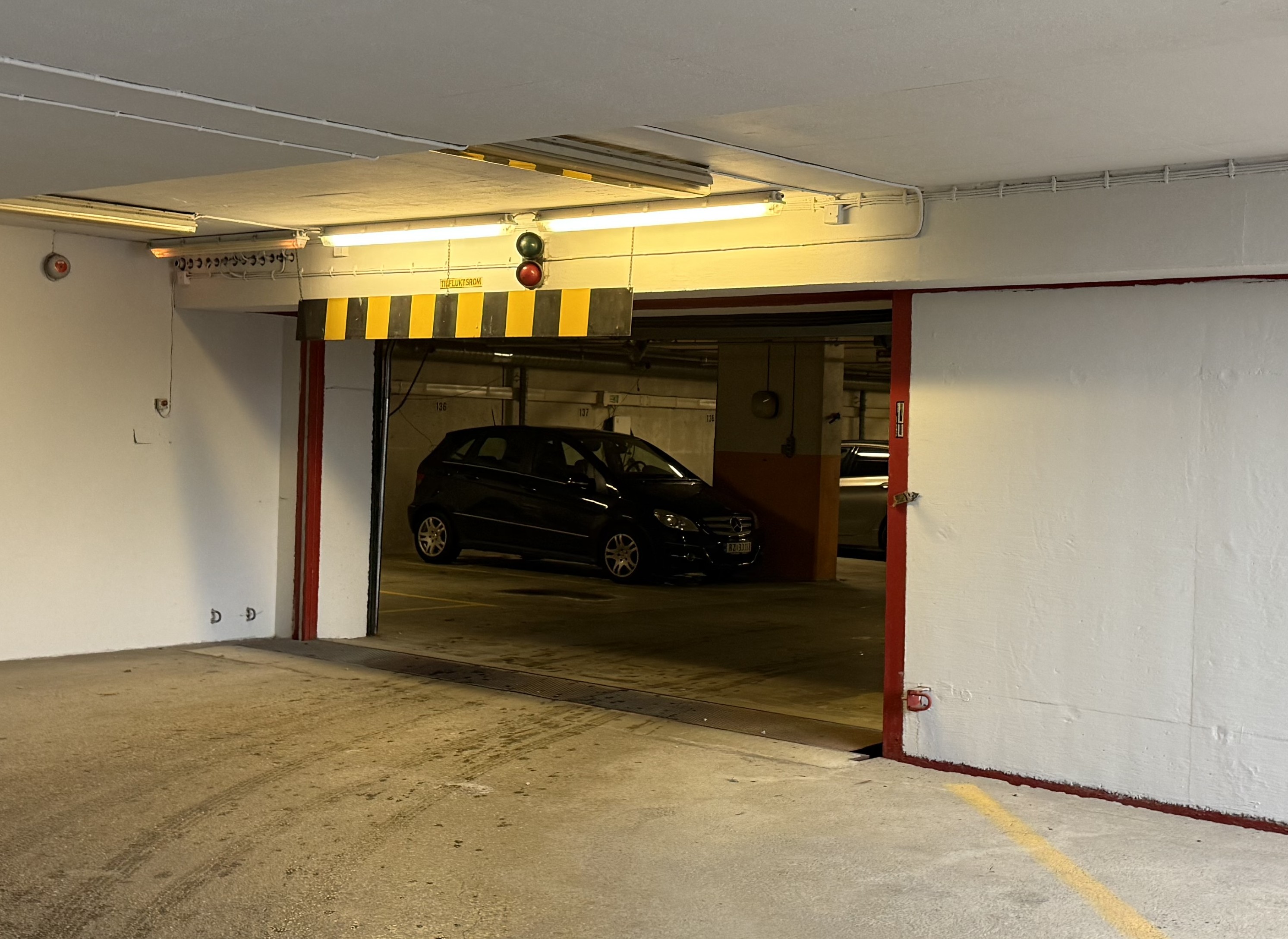 Kjøreporten til 1. etg i parkeringshallen ble påkjørt og har gjort at porten ikke fungerer.